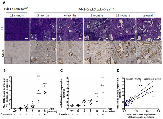 2.2. MiR-210-3p Expression Is Positively Correlated with Muc4 Expression during Pancreatic Carcinogenesis