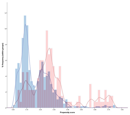 Multivariate models with backward addition of different variables to the model weighted by the propensity scores were performed, after excluding collinearity. To exclude biases deriving from outliers (particularly from cases with very low propensity scores and controls with high propensity scores) in the weighted analyses, standardized differences of all variables were used to compare the difference in means in units of the pooled standard deviation. Statistical analysis was performed using SPSS Statistics for Windows (version 24.0; IBM, Armonk, NY, USA) and STATA/SE 14.1 (StataCorp, Lakeway, TX, USA).