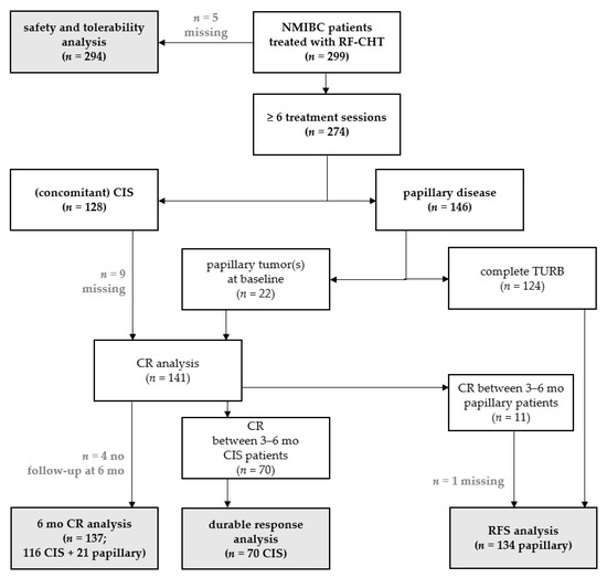Flow-chart for this retrospective study including all non-muscle invasive bladder cancer (NMIBC) patients treated with RF-CHT.