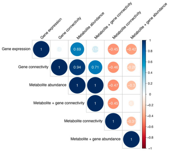 We combined standard univariate differential metabolite abundance and gene expression analysis with the inference and analysis of metabolite and gene association networks, since relevant information is contained in the relationships among molecular features and not in levels only [13,14].