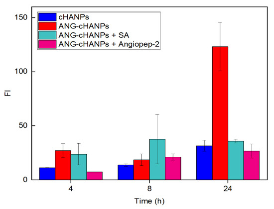 2.3.3. Thera-cHANPs and Thera-ANG-cHANPs Uptake in U87 Cells