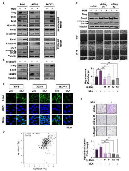 3.3. Slug Plays a Major Role in Regulating Neddylation Blockade-Mediated EMT in Cancer Cells