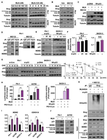 - Wang, S.P.; Wang, W.L.; Chang, Y.L.; Wu, C.T.; Chao, Y.C.; Kao, S.H.; Yuan, A.; Lin, C.W.; Yang, S.C.; Chan, W.K.; et al. p53 controls cancer cell invasion by inducing the MDM2-mediated degradation of Slug. Nat. Cell Biol. 2009, 11, 694–704. [Google Scholar] [CrossRef] [PubMed]