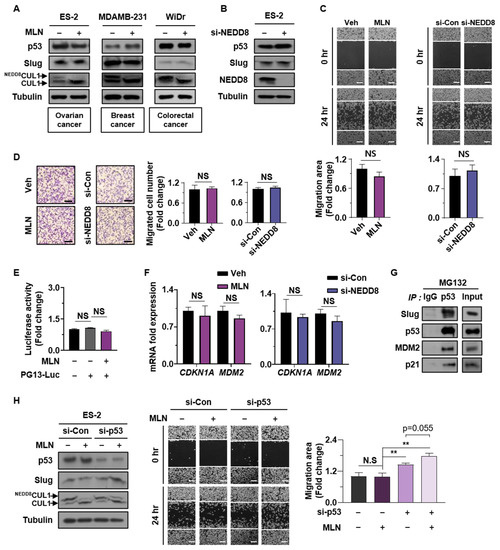 Kim, Y.; Park, J.B.; Fukuda, J.; Watanabe, M.; Chun, Y.-S. The Effect of Neddylation Blockade on Slug-Dependent Cancer Cell Migration Is Regulated by p53 Mutation Status. Cancers 2021, 13, 531. https://doi.org/10.3390/cancers13030531