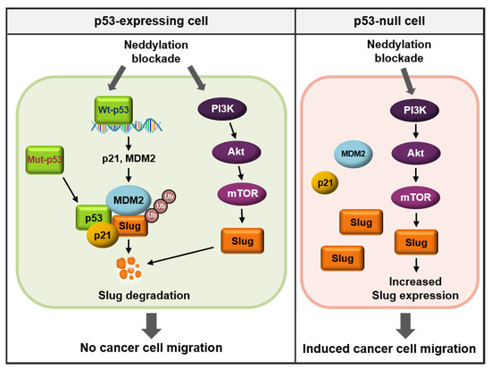 Kim Y, Park JB, Fukuda J, Watanabe M, Chun Y-S. The Effect of Neddylation Blockade on Slug-Dependent Cancer Cell Migration Is Regulated by p53 Mutation Status. Cancers. 2021; 13(3):531. https://doi.org/10.3390/cancers13030531