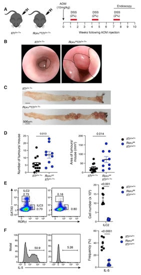 2.4. Loss of ILC2 Results in Increased Tumour Development in CAC