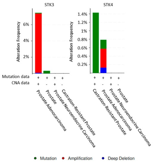 STK3 and STK4 alterations in prostate cancer. Analysis of all prostate cancer datasets within CBioportal [14].
