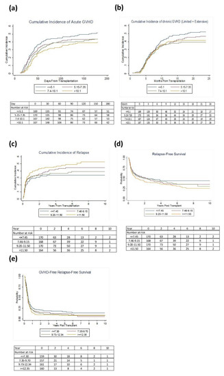 - Jagasia, M.; Arora, M.; Flowers, M.E.; Chao, N.J.; McCarthy, P.L.; Cutler, C.S.; Urbano-Ispizua, A.; Pavletic, S.Z.; Haagenson, M.D.; Zhang, M.J.; et al. Risk factors for acute GVHD and survival after hematopoietic cell transplantation. Blood 2012, 119, 296–307. [Google Scholar] [CrossRef]