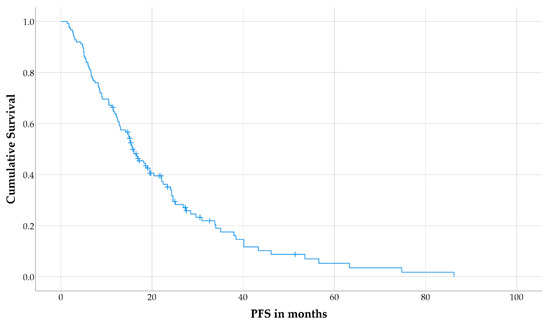 Kaplan–Meier curve for progression-free survival (PFS) in the total cohort.