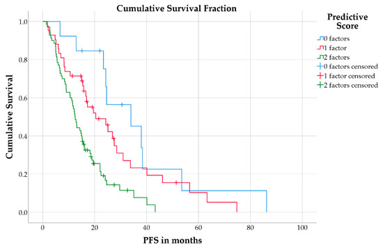 Kaplan–Meier curves for PFS in patients separated by the combined risk score.