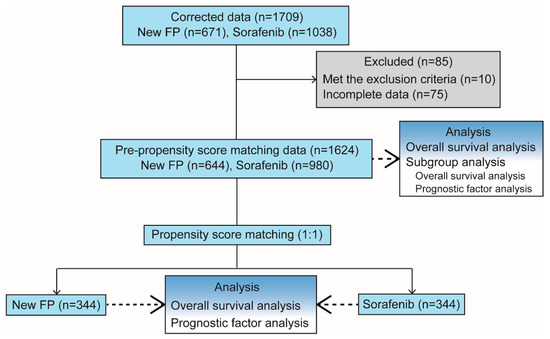 Here, several refinements were conducted to avoid bias in the study. (1) The sorafenib group’s data were collected from the hospital that do not offer New-FP therapy to avoid selection bias. (2) The two groups’ data were collected from the same period to avoid treatment bias. (3) The patients who were initially treated with sorafenib were excluded from the New-FP group. (4) The collected data were not analyzed by any person who administered New-FP or sorafenib. The data were analyzed by an independent statistician to avoid bias. (5) The data were performed using PSM.