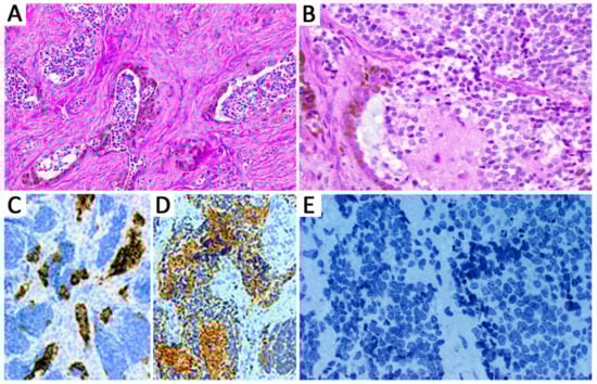 - Warren, M.; Matsuno, R.; Tran, H.; Shimada, H. Utility of Phox2b immunohistochemical stain in neural crest tumours and non-neural crest tumours in paediatric patients. Histopathology 2018, 72, 685–696. [Google Scholar] [CrossRef]