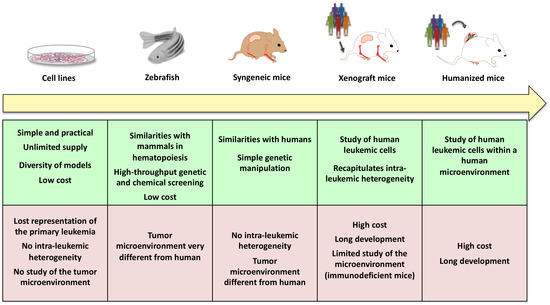 135. Skayneh, H.; Jishi, B.; Hleihel, R.; Hamieh, M.; Darwiche, N.; Bazarbachi, A.; El Sabban, M.; El Hajj, H. A Critical Review of Animal Models Used in Acute Myeloid Leukemia Pathophysiology. Genes 2019, 10, 614. [Google Scholar] [CrossRef]