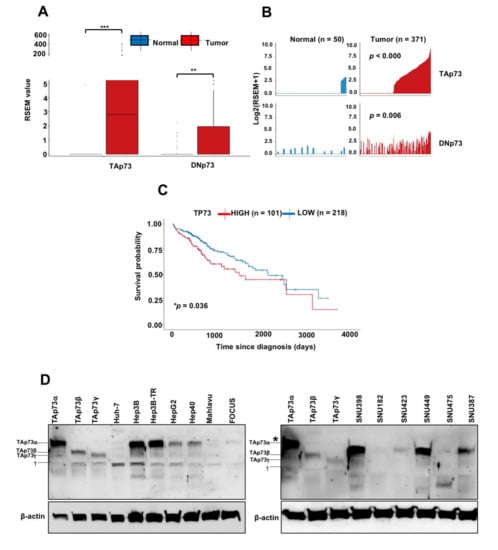 2.1. TAp73 Is Upregulated in HCC and Associated with Poor Patient Survival