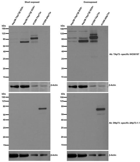 - Sayan, A.E.; Paradisi, A.; Vojtesek, B.; Knight, R.A.; Melino, G.; Candi, E. New antibodies recognizing p73: Comparison with commercial antibodies. Biochem. Biophys. Res. Commun. 2005, 330, 186–193. [Google Scholar] [CrossRef]