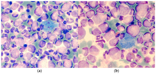 - Weil, S.C.; Hrisinko, M.A. A hybrid eosinophilic-basophilic granulocyte in chronic granulocytic leukemia. Am. J. Clin. Pathol. 1987, 87, 66–70. [Google Scholar] [CrossRef] [PubMed]