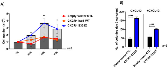 2.2. The CXCR4 Mutation S338X Promotes Cell Proliferation in WM