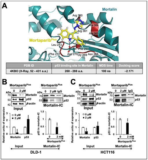 Sari, A.N.; Elwakeel, A.; Dhanjal, J.K.; Kumar, V.; Sundar, D.; Kaul, S.C.; Wadhwa, R. Identification and Characterization of MortaparibPlus—A Novel Triazole Derivative That Targets Mortalin-p53 Interaction and Inhibits Cancer-Cell Proliferation by Wild-Type p53-Dependent and -Independent Mechanisms. Cancers 2021, 13, 835. https://doi.org/10.3390/cancers13040835