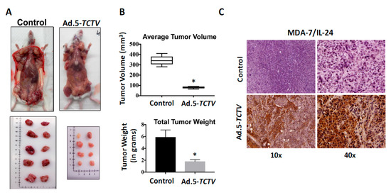 - Tong, A.W.; Nemunaitis, J.; Su, D.; Zhang, Y.; Cunningham, C.; Senzer, N.; Netto, G.; Rich, D.; Mhashilkar, A.; Parker, K.; et al. Intratumoral injection of INGN 241, a nonreplicating adenovector expressing the melanoma-differentiation associated gene-7 (mda-7/IL24): Biologic outcome in advanced cancer patients. Mol. Ther. 2005, 11, 160–172. [Google Scholar] [CrossRef]