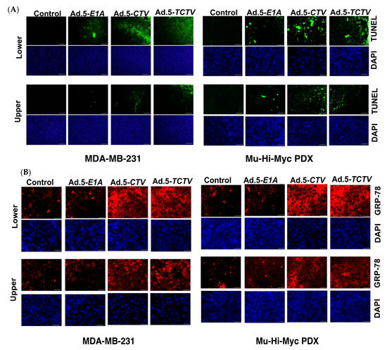 2.3. Ad.5-TCTV and Ad.5-CTV Infection Induce Comparable Levels of Cell Death in Cancer Cells