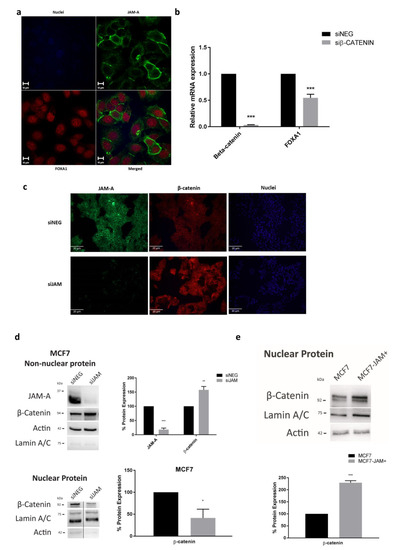 3.5. JAM-A Influences FOXA1 Transcription by Altering β-Catenin Expression and Localization