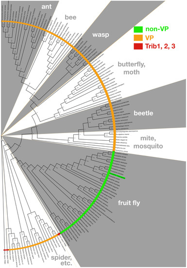 - Gramates, L.S.; Marygold, S.J.; Santos, G.D.; Urbano, J.M.; Antonazzo, G.; Matthews, B.B.; Rey, A.J.; Tabone, C.J.; Crosby, M.A.; Emmert, D.B.; et al. The FlyBase Consortium FlyBase at 25: Looking to the future. Nucleic Acids Res. 2017, 45, D663–D671. [Google Scholar] [CrossRef] [PubMed]