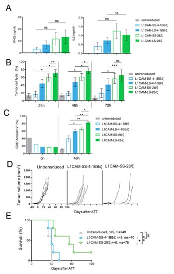 3.3. Superior Function of Human L1CAM-SS-28/ζ CAR T Cells Is Confirmed in a PDX Mouse Model