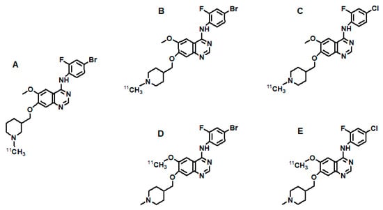 - Gao, M.; Lola, C.M.; Wang, M.; Miller, K.D.; Sledge, G.W.; Zheng, Q.H. Radiosynthesis of [11C]Vandetanib and [11C]chloro-Vandetanib as new potential PET agents for imaging of VEGFR in cancer. Bioorg. Med. Chem. Lett. 2011, 21, 3222–3226. [Google Scholar] [CrossRef]