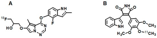 - Ilovich, O.; Billauer, H.; Dotan, S.; Mishani, E. Labeled 3-aryl-4-indolylmaleimide derivatives and their potential as angiogenic PET biomarkers. Bioorg. Med. Chem. 2010, 18, 612–620. [Google Scholar] [CrossRef] [PubMed]