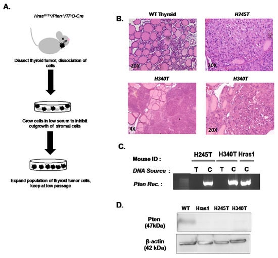 3.1. Generation of Stable Tumor Cell Lines from HrasG12V/Pten−/−/TPO Cre Thyroid Tumors
