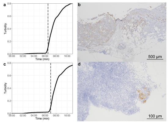 - Tsujimoto, M.; Nakabayashi, K.; Yoshidome, K.; Kaneko, T.; Iwase, T.; Akiyama, F.; Kato, Y.; Tsuda, H.; Ueda, S.; Sato, K.; et al. One-step nucleic acid amplification for intraoperative detection of lymph node metastasis in breast cancer patients. Clin. Cancer Res. 2007, 13, 4807–4816. [Google Scholar] [CrossRef]