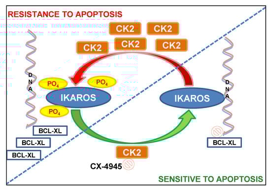 - Dovat, S.; Song, C.; Payne, K.J.; Li, Z. Ikaros, CK2 kinase, and the road to leukemia. Mol. Cell. Biochem. 2011, 356, 201–207. [Google Scholar] [CrossRef]