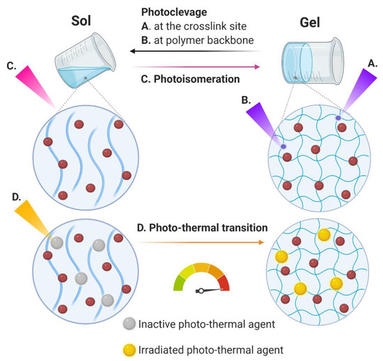 - Li, L.; Scheiger, J.M.; Levkin, P.A. Design and Applications of Photoresponsive Hydrogels. Adv. Mater. 2019, 31, 1807333. [Google Scholar] [CrossRef]