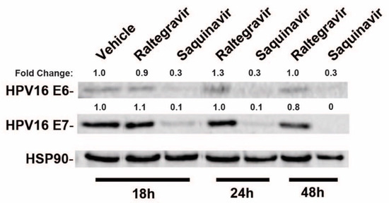 - Hampson, L.; Kitchener, H.C.; Hampson, I.N. Specific HIV protease inhibitors inhibit the ability of HPV16 E6 to degrade p53 and selectively kill E6-dependent cervical carcinoma cells in vitro. Antivir. Ther. 2006, 11, 813–825. [Google Scholar]