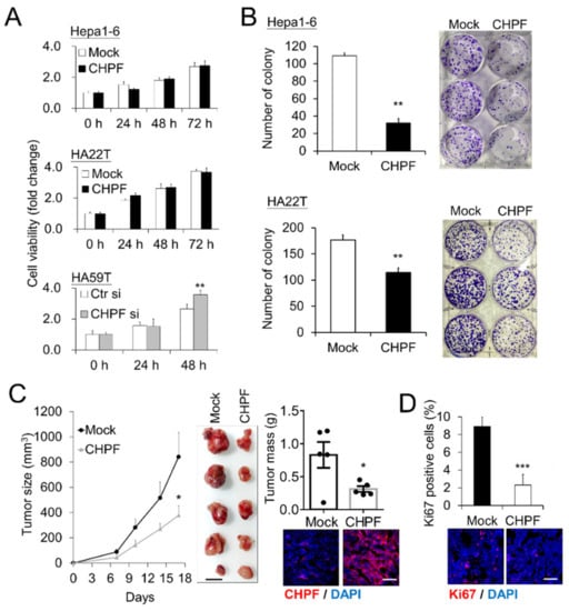 2.2. CHPF Affects HCC Cell Growth In Vitro and In Vivo