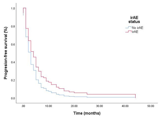| Patients with irAEs (n = 91) | Patients without irAEs (n = 56) | p-Value | |