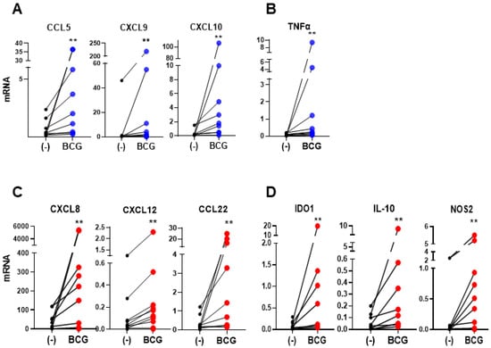 2.1. BCG Induces Both the Effector-Type and Suppressive Chemokines and Inflammatory Mediators