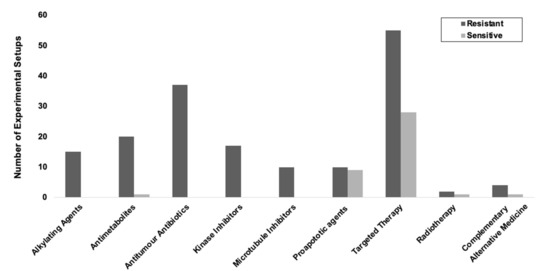 The proportional increase in chemosensitivity of prostate cancer and sarcomas can be accounted for by the multiple specific enzymes targeting novel chemotherapy agents tested in each of the publications compared to other cancer types studied in other publications. When sarcoma cell lines responses to novel targeted therapy DZNep compared to a classical chemotherapy agent cisplatin, all cell lines displayed chemosensitivity to DZNep and resistance to cisplatin [80]. The limited literature regarding these novel chemotherapy agents demonstrates the need for further in depth understanding into these novel chemotherapy agents is required to evaluate the outcomes from studies which involve novel experimental chemo agents.