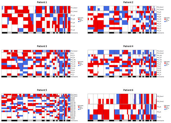 Figure 6 shows for each patient the CNA profile of the tissue and of the corresponding CTMs. CTMs show a remarkable variability in CNA profiles, which can possibly suggest that they originate from distinct regions in the tumor or from occult systemic micrometastatic sites.