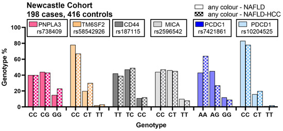 3.2.4. The Newcastle Cohort—Genotype Associations within the Cirrhotic Versus Non-Cirrhotic NAFLD-HCC Cases