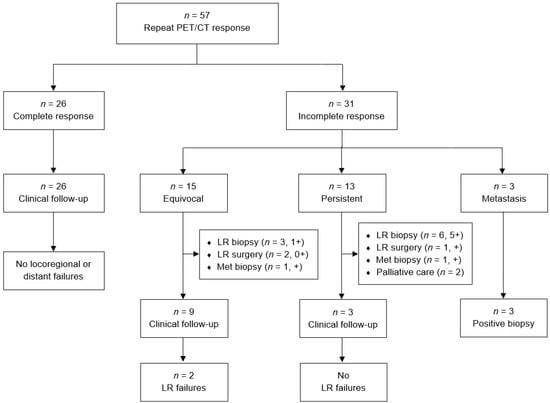 Flowchart of patient responses and clinical outcomes following repeat PET/CT scan.