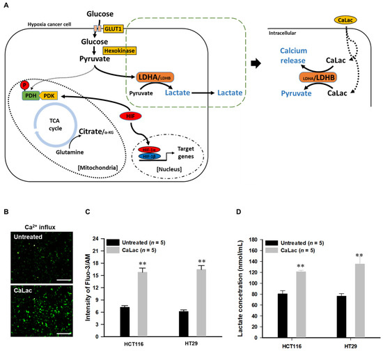 3.1. The Direct Effect of Lactate Calcium Salt (CaLac) Influx into Colorectal Cancer (CRC) Cells on Anaerobic Glycolysis