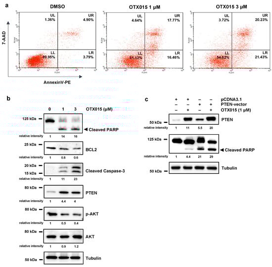 3.2. OTX015 Induced Apoptosis by Modulating PTEN/AKT Pathway