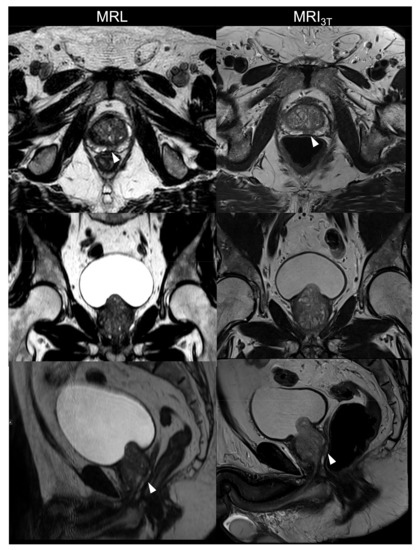 Previous studies made a comparison between a standard diagnostic 1.5 T and 3 T prostate MRI [2,25]. For instance, Ullrich et al. [25] showed that both field strengths had similar diagnostic performance and PIRADS scoring with an excellent inter-reader agreement for image quality and PIRADS score. In our cohort, PIRADS scoring was similar on MRL and MRI3T with a substantial inter-reader reliability.