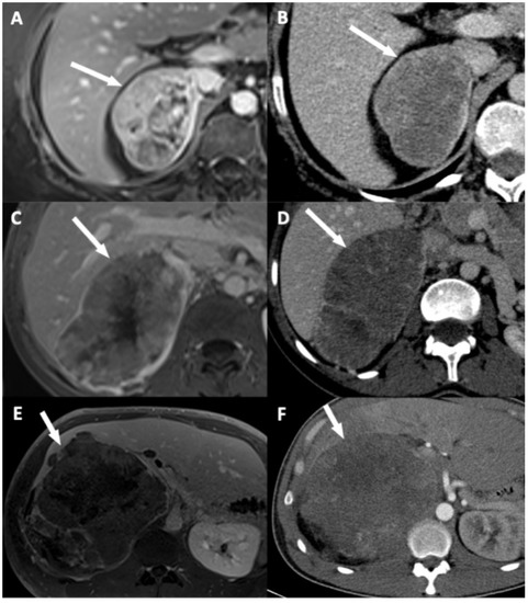 - Park, J.J.; Park, B.K.; Kim, C.K. Direct and indirect imaging features of adrenohepatic fusion. Abdom. Radiol. 2016, 41, 377–383. [Google Scholar] [CrossRef]
