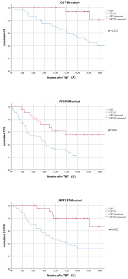 3.2. Comparison of CRT and CRT-IO in the Entire Cohort