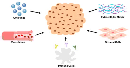 The inclusion of mesenchymal stromal cells into three-dimensional bioprints has also shown potential for recapitulating the native TME. This method was detailed by Byambaa et al. in their bioprinting of three-dimensional bone tissue. In this study, the bioprinted bone tissue constructs acted as biomimetic in vitro matrices capable of coculturing bone marrow derived mesenchymal stem cells and human umbilical vein endothelial cells. Through immunostaining and RT-qPCR, it was confirmed that the encapsulated human mesenchymal stem cells were able to form a mature bone marrow niche after 21 days of culture. The bioprinting method described in this study demonstrated the control of local physical and chemical microniches and established gradients in the bioprinted constructs [134]. While this study focused on the engineering of bone tissue, the applications of the effects of using mesenchymal stromal cells in three-dimensional bioprints could be extended beyond bone tissue and applied to cancer models. Mesenchymal stromal cells have also been successfully incorporated into three-dimensional bioprints of cartilage, cardiovascular tissue, neural tissues, and tendons, thus speaking to their ability to enhance the TME of bioprints [135].