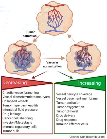 3.2.2. The Therapeutic Benefit of Vascular Normalization Therapy in Cancer