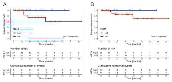 | VISTA (L vs. H) | 4.89 (1.02–23.53) | 0.047 * | ||
