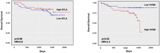 - Lan, X.; Li, S.; Gao, H.; Nanding, A.; Quan, L.; Yang, C.; Ding, S.; Xue, Y. Increased BTLA and HVEM in gastric cancer are associated with progression and poor prognosis. OncoTargets Ther. 2017, 10, 919–926. [Google Scholar] [CrossRef]